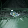 Все узлы, испытывающие повышенные нагрузки, усилены высокопрочной тканью. Край внешнего тента и край юбки обшиты прочной стропой, что значительно уменьшает риск порвать тент ветками и камнями. Стропа красного цвета, поэтому крайпалатки виден даже в сумерках и густой траве. Юбка по периметру палатки защищает от потоков холодного воздуха, дождя и насекомых.